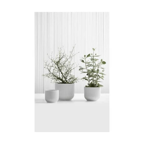 Flowerpot fra Lyngby Porcelæn er designet med inspiration fra de elegante Lyngby-klassikere. Urtepotteskjuleren har Lyngby Porcelæns velkendte riller og et minimalistisk og enkelt look. Hold den stramme, nordiske stil med en simpel, grøn plante eller lad farverige blomsterknopper stå i kontrast til det hvide porcelæn.