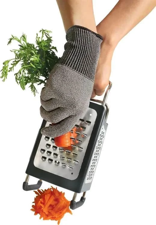 Med denne skæreresistente handske fra Microplane skærer du dig ikke, når du river gulerødder eller squash på rivejernet – og du kan få brugt hele grøntsagen uden at være nervøs for at skære dig. Handsken er også en god ven til børnene, hvis de får lyst til at hjælpe til i køkkenet.