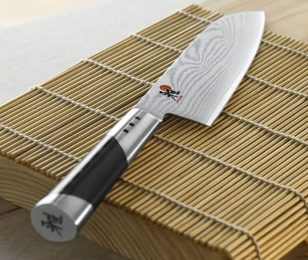 Knive fra Miyabi 7000D serien har en bladkerne af CMV60 pulverstål, som er omgivet af 64 lag stål i varierende hårdhedsgrader. Dette giver dig en kniv med et blad i en ekstrem hårdhed på 60 Rockwell, som holder sig skarpt selv efter mange kokkekunster.