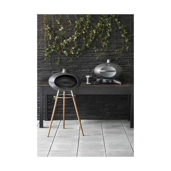Morsø Forno II grill er velegnet til både kul og brænde. Materiale: støbejern og teaktræ. Højde: 109 cm. Diameter: 55 cm.
