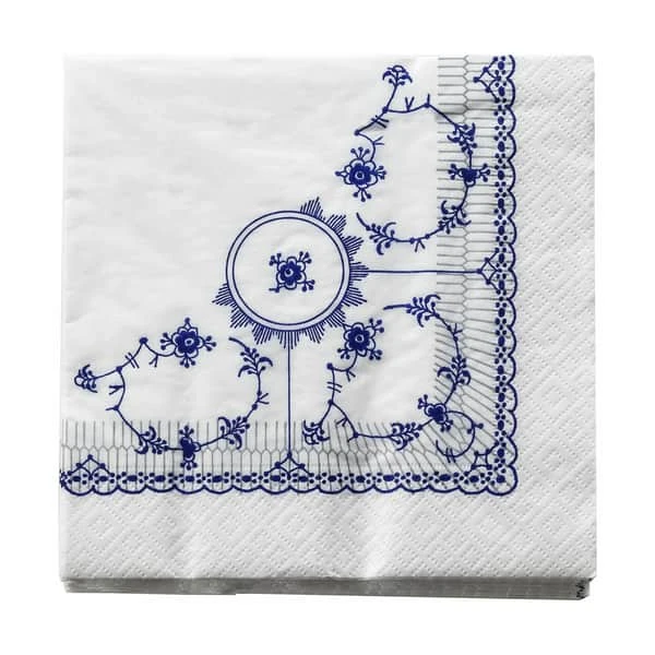 Frokostservietterne er fremstillet af 100% nedbrydeligt papir med det originale Royal Copenhagen musselmalet mønster, som vil pynte på enhver borddækning. Pakken indeholder 20 servietterne, som er FSC-godkendt. De musselmalede frokostservietterne er den perfekte serviet til enhver lejlighed, hvor bordet skal være indbydende og gløde varmt, når du byder gæsterne velkommen.Servietterne findes i anden farve og passer flot til de smukke bloklys og stagelys i samme stil og tone.