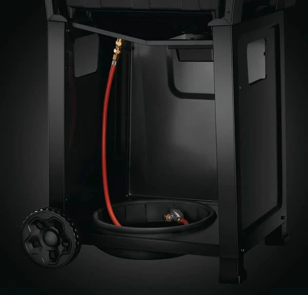 Når du har du travlt med at grille, er det vigtigt med afsætningsplads og nem adgang til redskaberne. Du kan nemt slå de to nedfældelige sideborde op med redskabsholdere op, når du skal bruge dem. Og hvis terrassen eller altanen er lille, så slås de bare ned igen, når grillen er slukket, så du får gavn af pladsen. Underskabet er stort med skabslåge, og de to låsbare hjul gør det nemt at flytte rundt på grillen.