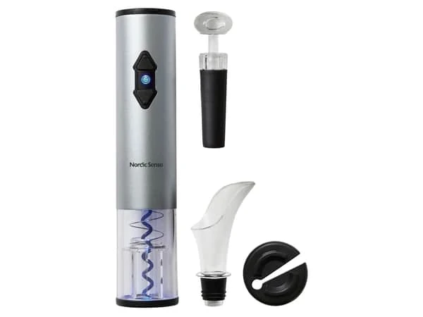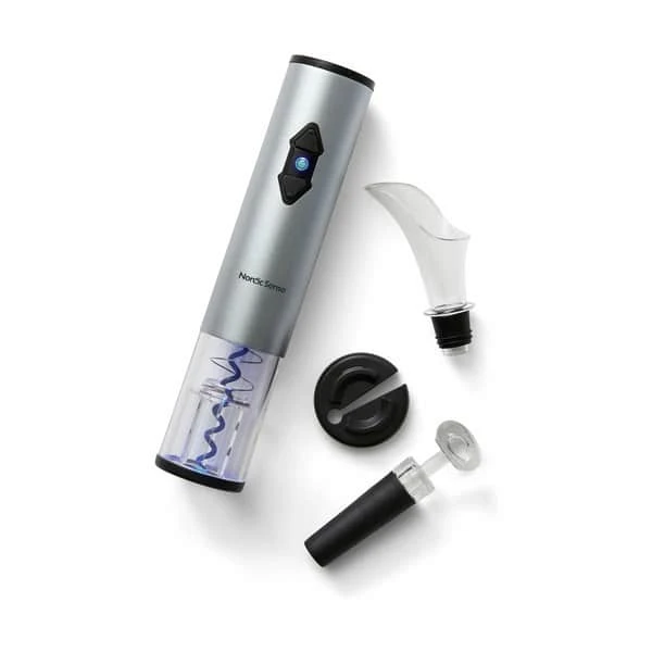 Med vinåbnersættet kan du være sikker på, at du ikke selv skal bruge mange kræfter for at åbne en flaske vin, da sættet er med en batteridrevet vinåbner, folieskærer, skænketud og vinpumpe.