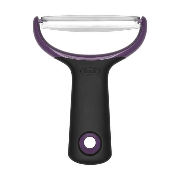 Med OXO Good Grips Y-skrælleren kan du nemt og hurtigt skrælle store grøntsager som eksempelvis aubergine og butternut squash, men du kan også bruge den til at skære rødkål, hvidkål eller salat i tynde skiver. Det ekstra brede skæreblad i japansk rustfrit stål er helt perfekt til opgaven. Det kompakte design og håndtag i non-slip gummi giver et fast greb, når du arbejder med den.