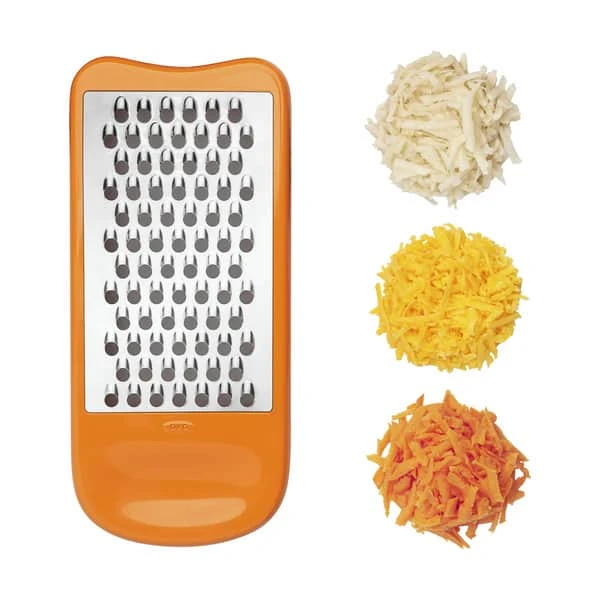 Mini mandolinsættet fra OXO Good Grips er et kompakt sæt med et groft og et medium rivejern, samt et skråt mandolin-blad i en smart og kompakt opbevaringsboks, hvilket gør det nemt at opbevare i køkkenskabet. Låget fungerer også som opsamler, og er påført måleenheder, hvilket gør madlavningen endnu nemmere.
