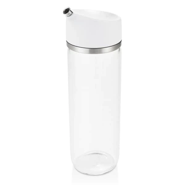 Oliedispenseren er fremstillet i borosilikatglas, som gør den yderst solid. Den kan derfor sagtens indgå i køkkenet, når madlavningen er på dit højeste og ingredienserne flyver om ørene. Med en silikonepakning er dispenseren helt drypfri og er perfekt til både olie, eddike og soya.