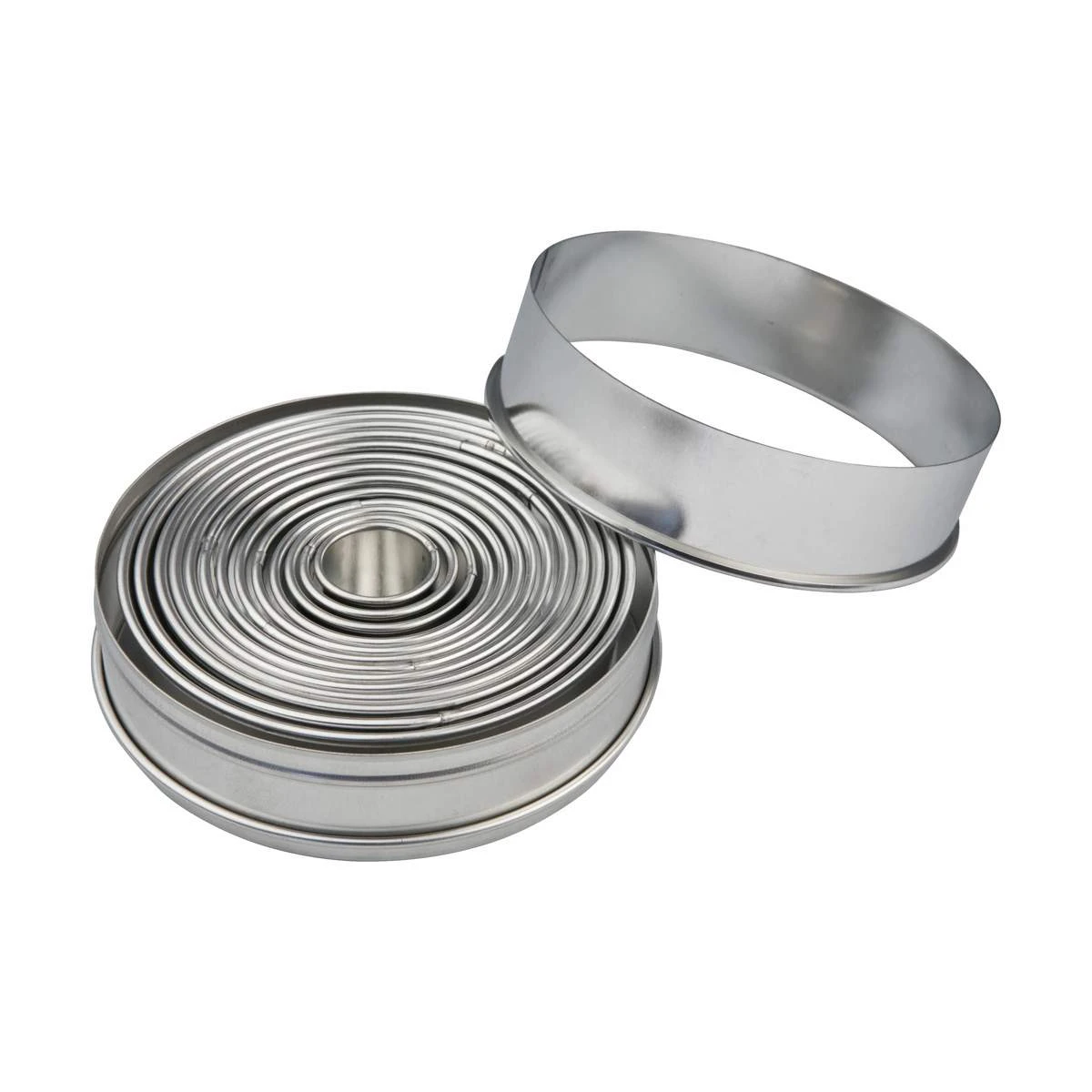 Lav perfekt formede kager med udstikkersættet fra Patisse. Du får 14 stk. runde udstikkere i en stålboks med en diameter på mellem 2,5-11,5 cm.