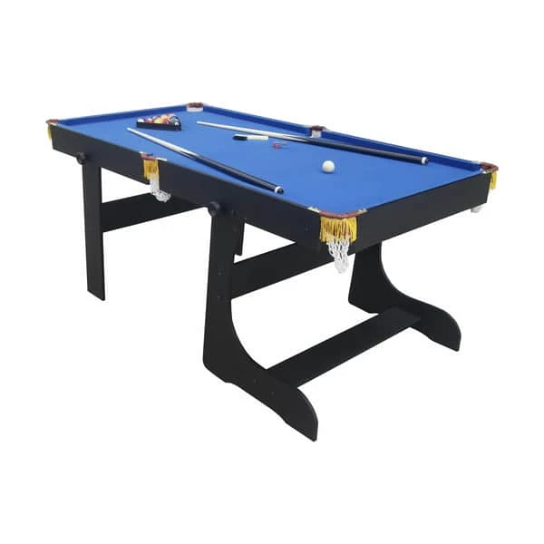 Har du altid ønsket dig et poolbord, men mangler pladsen til at have det permanent stående fremme? Så er dette poolbord fra NORDIC Games lige noget for dig! Med sit foldbare design kan du let gemme bordet væk, når du ikke bruger det, og samtidig nyde det, når du vil spille. Bordet leveres med alt, hvad du behøver for at komme i gang, inklusive poolkugler, poolkøer, kridt, trekant og børste. Bordet har en flot sort ramme og blå filt, og selvom det er foldbart, er det stadig meget stabilt takket være dets kraftige ben.