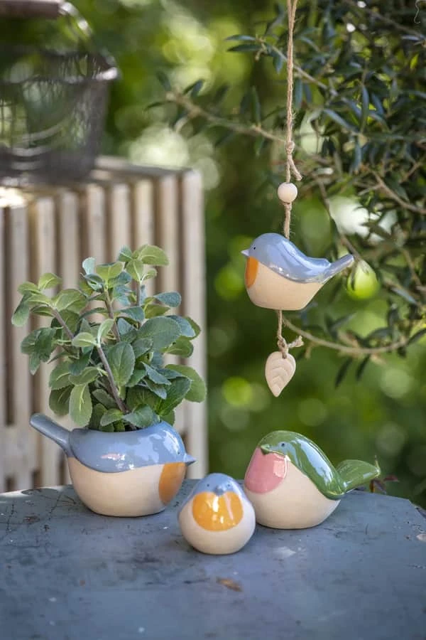 Flot potte fra CASA Living, som forestiller en fugl, der er med til at give et flot look på havebordet.