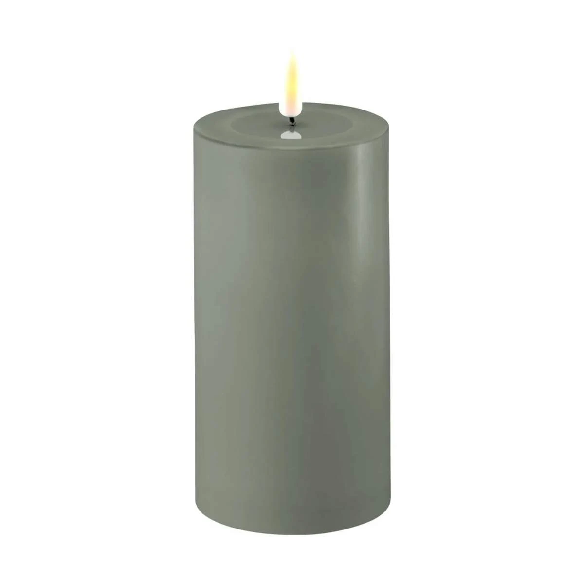 Lyset er lavet af ægte stearin og har integreret LED-lys med en flamme, der ser realistisk ud. Bloklyset har et stilrent udtryk med wet look i toppen, så det ligner, at stearinen er flydende – ligesom et rigtigt lys.
