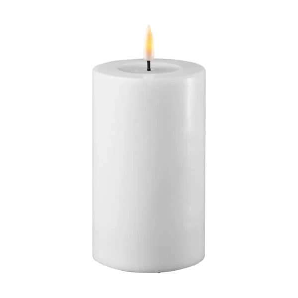 Lyset er lavet af ægte stearin og har integreret LED-lys med en flamme, der ser realistisk ud. Bloklyset har et stilrent udtryk med wet look i toppen, så det ligner, at stearinen er flydende – ligesom et rigtigt lys.