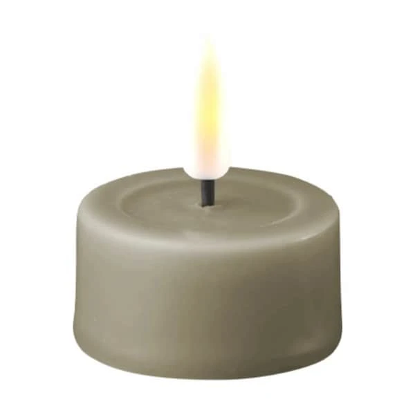 Lyset er lavet af ægte stearin og har integreret LED-lys med en flamme, der ser realistisk ud.
