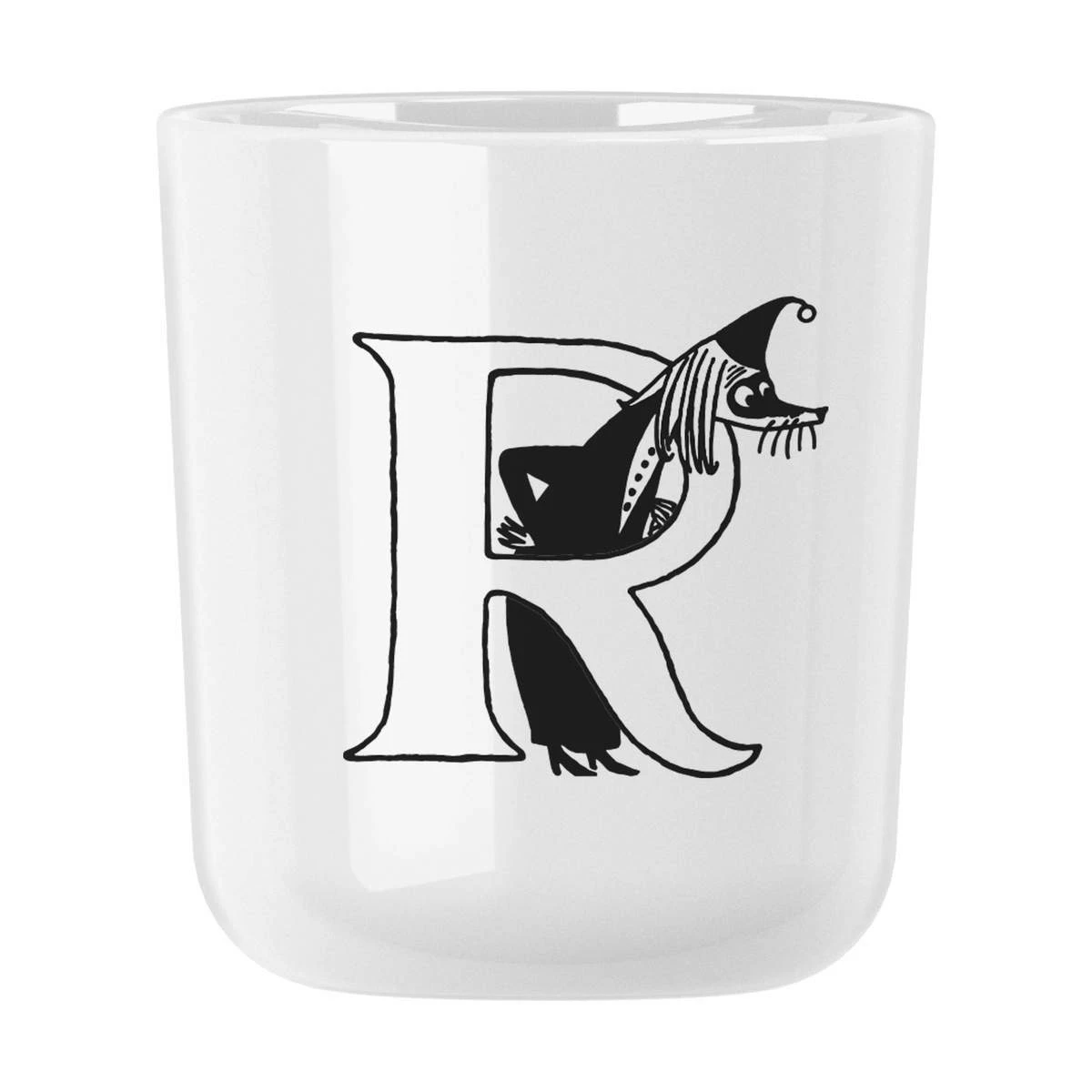 Moomin ABC koppen kommer i 26 versioner med hvert sit bogstav fra A til Z, samt en af de sjove figurer fra Mumiernes verden, afbilledet på siden af koppen.