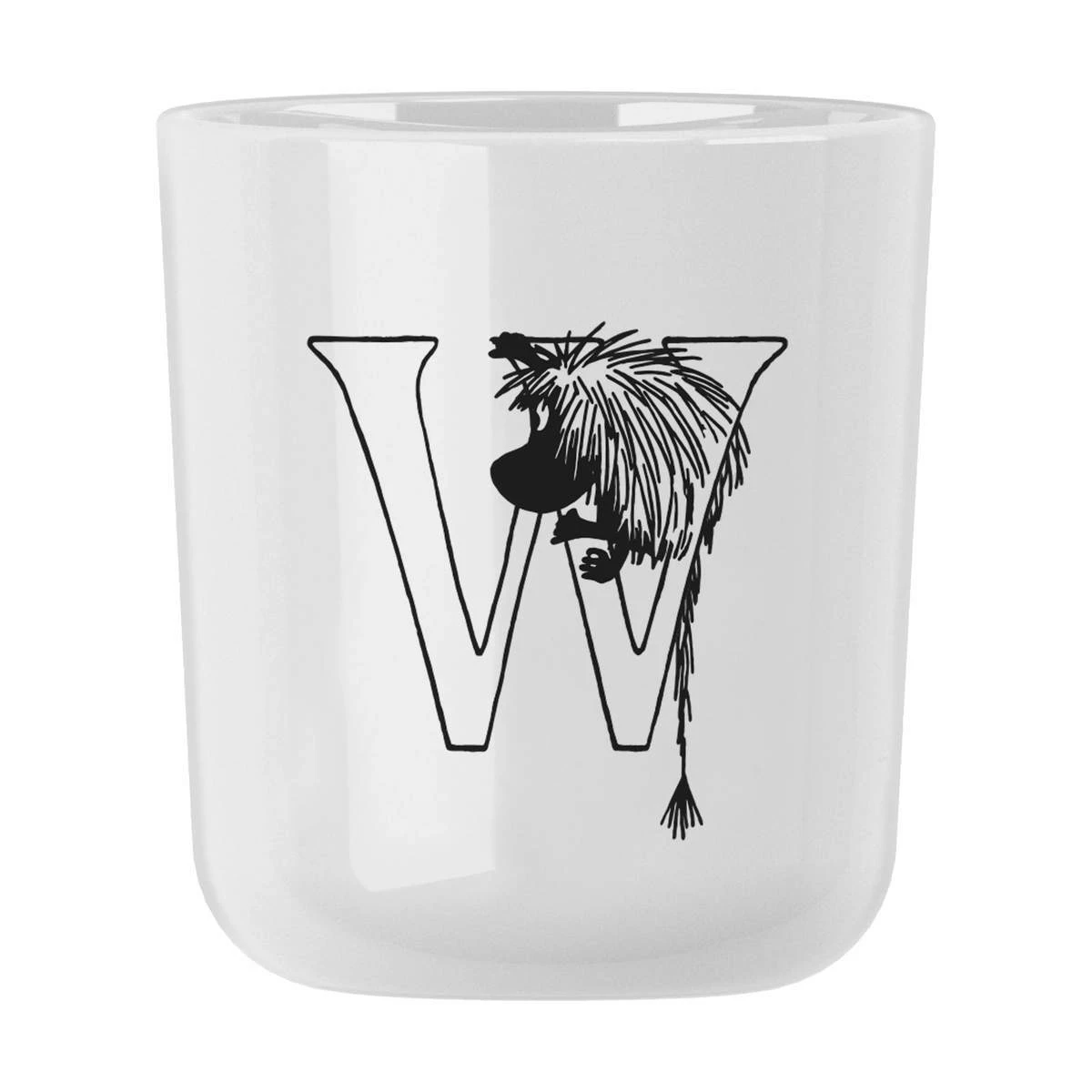 Moomin ABC koppen kommer i 26 versioner med hvert sit bogstav fra A til Z, samt en af de sjove figurer fra Mumiernes verden, afbilledet på siden af koppen.