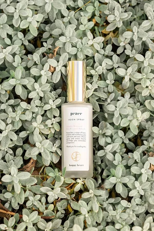 Room Sprayen Peace fra Happy Heart ”åbner hjerter, omfavner, skaber indre ro og forbindelse”. Spred duften i rummet og lad dens beroligende effekt sænke sig.