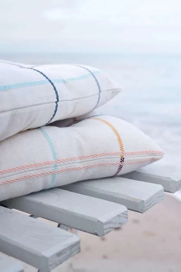 Skab hygge og stemning i haven eller på terrassen med disse havehynder. Den flotte beige farve og de farverige detaljer passer godt til skøn sommer i haven.