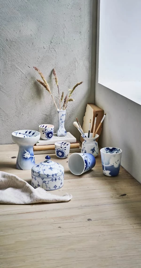 Royal Copenhagen har produceret håndmalet porcelæn siden 1775 og har udviklet adskillelige historiske stel. Borddækning har aldrig været sjovere. Fælles for alle designs er, at de repræsenterer en del af Royal Copenhagens arv og det markante riflede formsprog gør det oplagt at kombinere stellene på kryds og tværs.