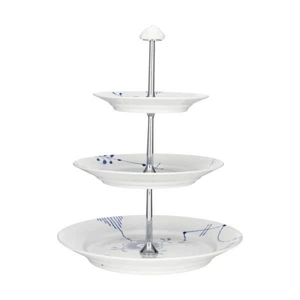 Lav lækre muffins og flotte kager og placer dem alle på denne 3-lags Étagére med det blå mega riflet mønster. Lad kagestanderen indgå i bordopdækning, for er mere luksuriøst look. Brug kagefadet med andre dele fra serien Blå Mega Riflet eller kombiner med andre serier fra Royal Copenhagen