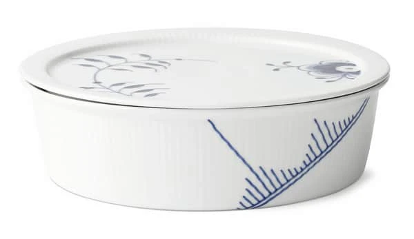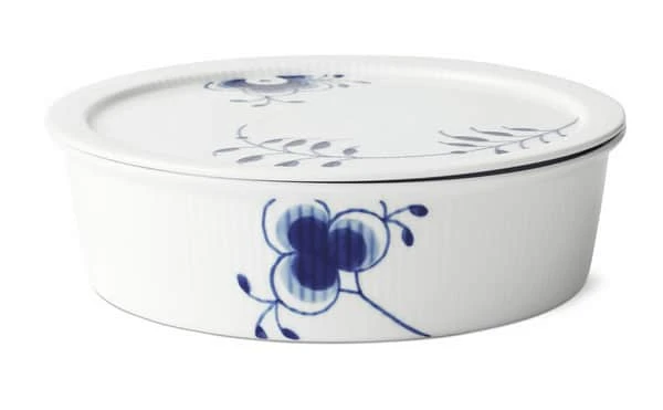 Den brede Blå Mega Riflet skål med låg fra Royal Copenhagen pynter på ethvert bord. Fyld fx skålen med hjemmelavede småkager til eftermiddagskaffen og lad den pynte på kaffebordet.