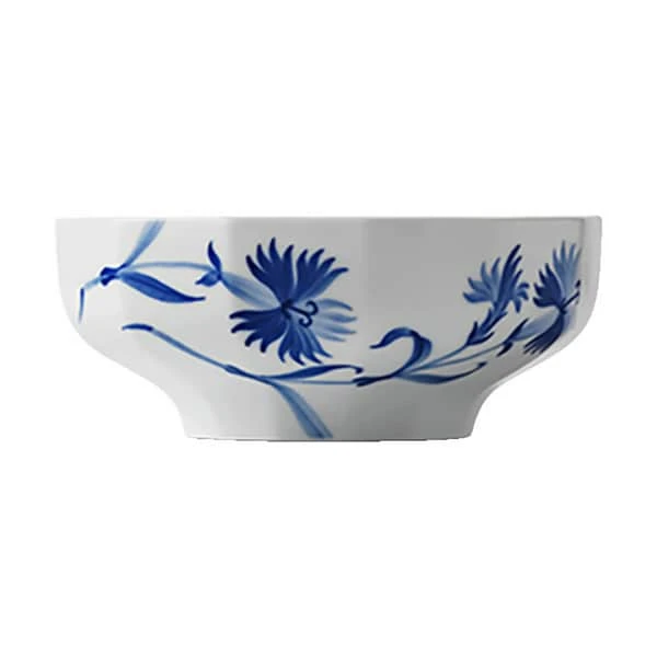Duftnelliken pryder siderne af Blomst-skålens fine kanter. Skålen fra Royal Copenhagen har en moderne coupé-form, som møder sin kontrast i det klassiske blå blomstermotiv. Server sommerens bær i skålen fra Blomst.