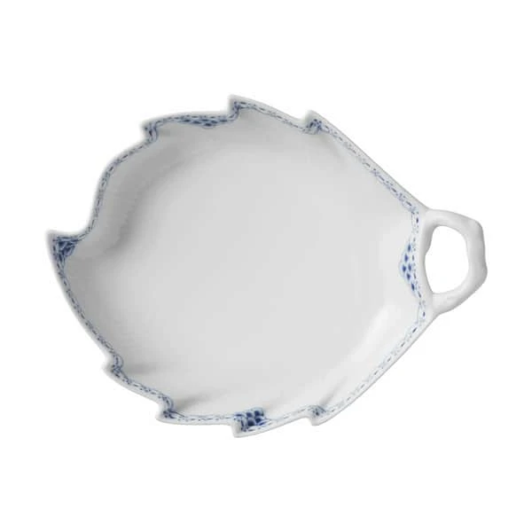 Med sin håndmalede blondekant langs bladets afrundede spidser og hanken, der er formet som en lille gren, er den bladformede Prinsesse Asiet fra Royal Copenhagen et iøjefaldende stykke porcelænshåndværk. Brug fadets romantiske udtryk i en borddækning som sidetallerken eller som et lille serveringsfad på middagsbordet eller kaffebordet.