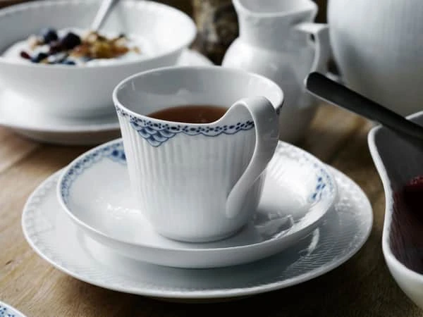 Vi fortjener alle at føle os lidt kongelige nu og da, og det er let, når du nyder en fristende earl grey i Royal Copenhagens Prinsesse kop med underkop. Prinsesse stellet blev skabt som te-stel, og denne smukke kop er derfor et klassisk element til borddækningen.