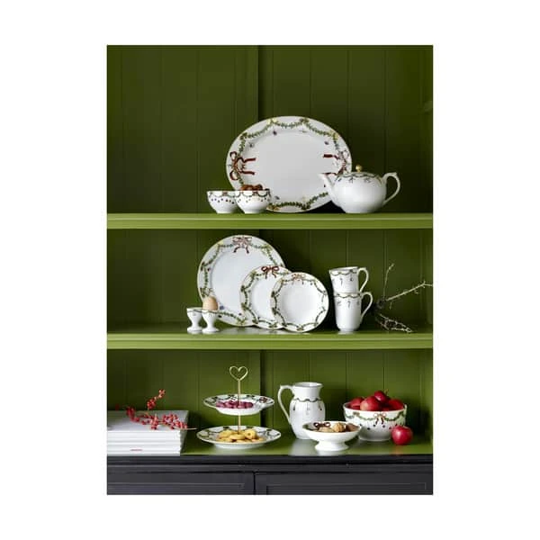 Stjerne Riflet serien fra Royal Copenhagen er stellet, hvor alt det bedste fra julen er samlet. Smukke guirlander hænger side om side med gaver og traditionelt julepynt – en klassiker i julen. Den smukke kollektion er skabt med inspiration i et stel, der blev produceret første gang i 1895, og i dag pryder Stjerne Riflet juleborde overalt i kongeriget.