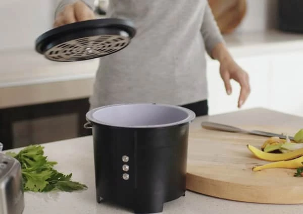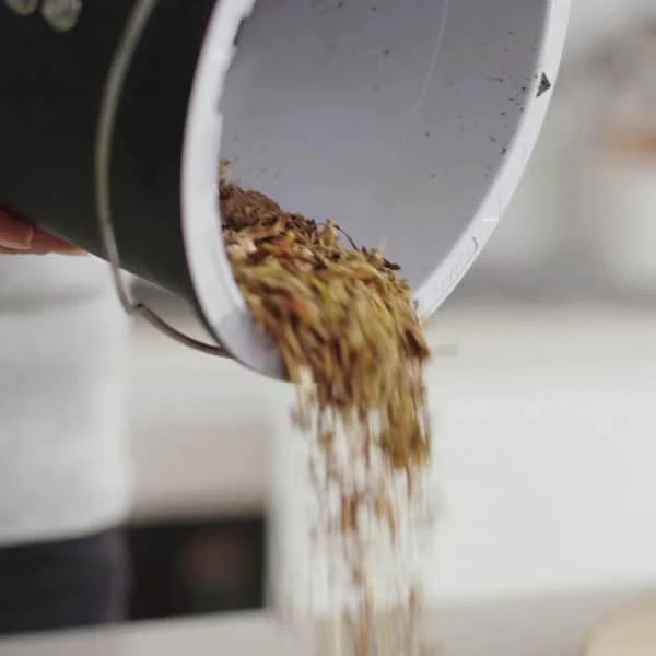Dine madrester og øvrige køkkenaffald tørres, formales, afkøles og reduceres til lugtfri økochips, dvs. gratis, næringsrig muld til din køkkenhave eller stueplanter. Samtidig mindskes mængden af dit køkkenaffald med over 80 %, så du slipper for at gå ud med skraldet så tit. Det hele foregår i kompostspanden, som står i dit køkken og transformerer madspild til plante-næring – det er da smart!