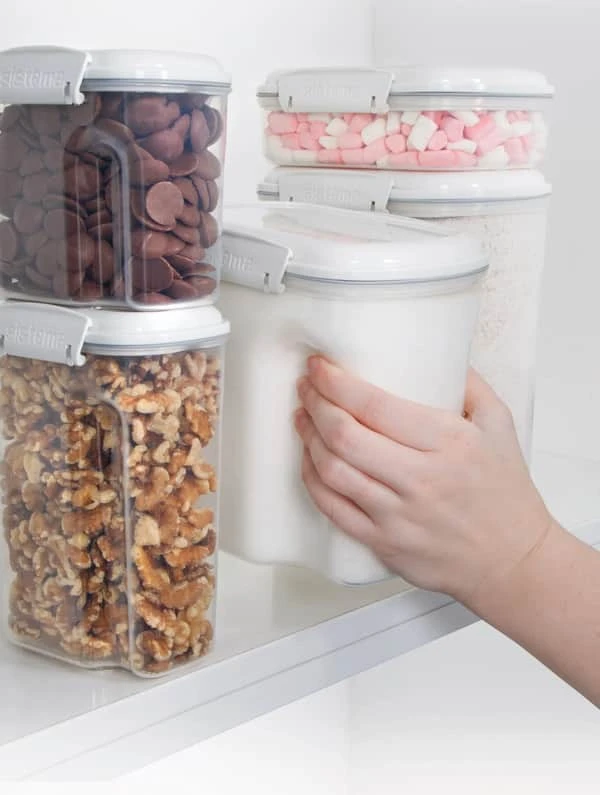 Desuden er Bake It-serien designet med de karakteristiske Sistema klips, som sikrer, at beholderen holder helt tæt og dermed holder indholdet friskt. Nogle beholdere er designet med et smart låg i toppen, hvilket gør det nemt for dig at hælde og dosere dine ingredienser.