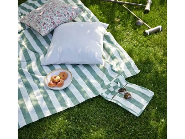 Det hyggelige stribede picnictæppe fra Södahl er perfekt til at samle familien på græsplænen i haven eller på stranden. Det kan smart foldes sammen i en lille taske, så du kan tage det med på farten.