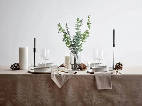 Winterland servietterne er prydet med dekorative juletræer og stjerner og passer derfor perfekt til julesæsonens festlige middage. Bomuldsstoffet er damaskvævet, hvilket giver stoffet en flot dybde.