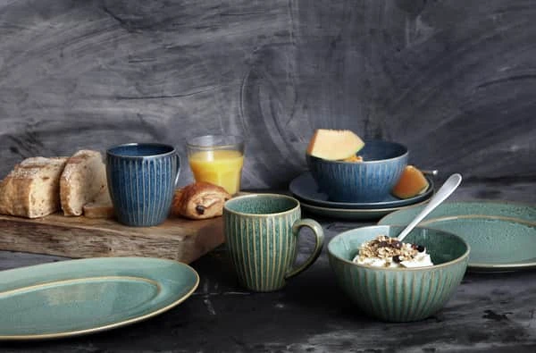 Sofia stellet med riflet kant giver et ekstra pift på middagsbordet med den flotte reaktionsglasur. Ikke to elementer er ens, så din borddækning bliver helt unik.