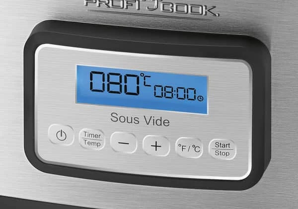 Med en kapacitet på 8 liter er denne Sous Vide maskine perfekt til hverdagens brug, når der skal serveres mad for den nærmeste familie. Der kan være et par bøffer eller en lille steg deri. Sæt maden over om morgenen og der er veltilberedt mørt kød når du kommer hjem.