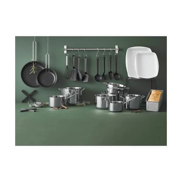 Køkkenværktøjet i kunststof tåler op til 220°C, men tåler ikke at blive efterladt og glemt i en glohed gryde eller pande.