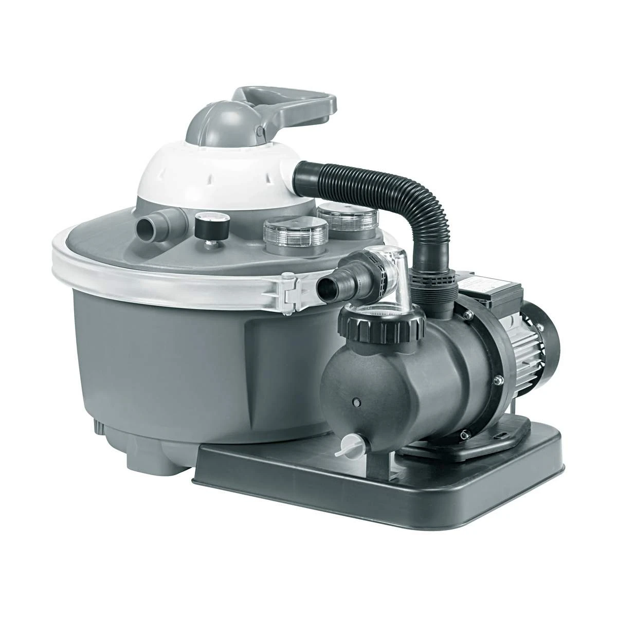 Filtersystemet har en filtertank og en kraftig selvsugende pumpe, der kan cirkulere alt poolvandet 5 gange i døgnet. Pumpen er udstyret med et forfilter, der er praktisk, når vandet skylles tilbage og du skal rengøre filtermaterialet. Der er desuden et integrerede manometer, så du nemt kan følge med i driftstrykket.