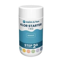 Med Klor starter hurtigklor fra Swim & Fun kan du hurtig og effektiv desinficere dit poolvand. Du kan bruge den ved sæsonstart, når du lige har fyldt din pool. Eller til chokbehandling af problemvand fx belægninger eller mat og uklart vand.