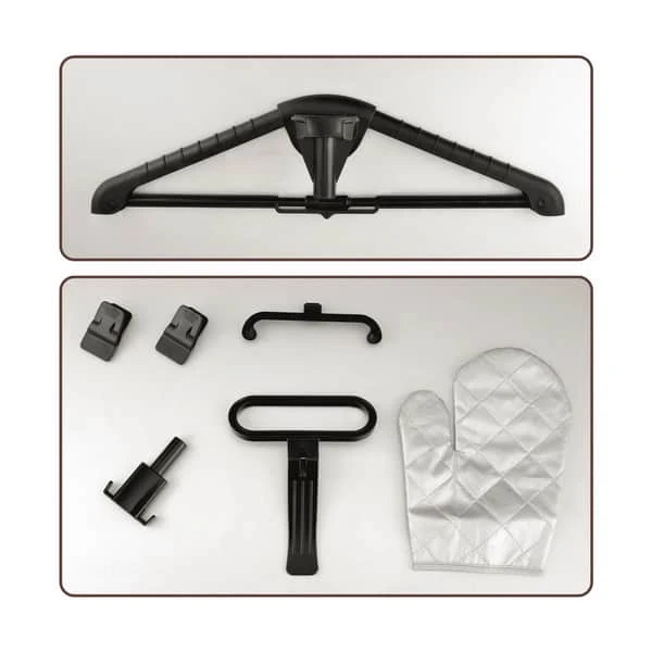 Damperen har 2 damphåndtag, som kan bruges til forskellige tekstiler. Du kan indstille tøjdamperen fra 71-167 cm og med en vandslange på 117 cm, kan du nå hele vejen rundt. Der medfølger bøjler, klip og handsker til damperen.