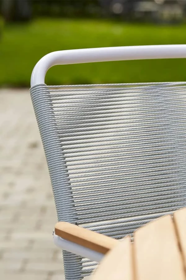 Verona stolen har et klassisk og enkelt design, som let passer ind i haven, på terrassen eller altanen til de mange hyggestunder. Den stabelbare stol måler D 45 x B 53,5 x H 85/46 cm og har et stel i pulverlakeret aluminium med vejrbestandigt SunLoom flet på ryg og armlæn, der bringer tankerne tilbage til 70´ernes klassiske snoredesign. Med SunLoom flet er snoredesignet bare endnu stærkere, behageligere og fletten bliver ikke slap.