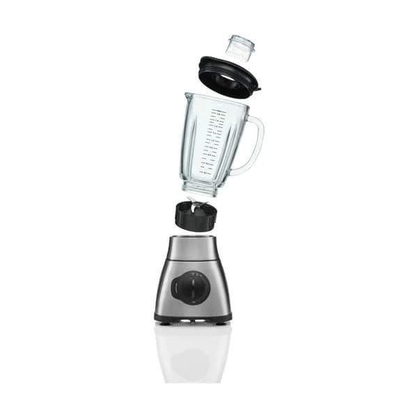 Glaskanden rummer 1,8 liter og har praktiske målestreger. Du kan nemt tilføje ingredienser, mens blenderen er i gang, gennem påfyldningshullet i det aftagelige låg.