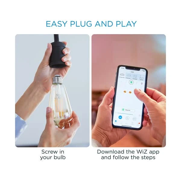 Lyspæren har en lige rørform med synlige LED-tråde, tonet ravgult glas og en E27-fatning, der kan lyse op til 650 lumen. Lyset kan indstilles fra et ravgulligt skær på 2200 kelvin til at lyse som dagslyshvid på 5500 kelvin. Pæren kan desuden dæmpes efter behov og forbindes til WiZ-appen, hvor du kan øge og dæmpe lysstyrken direkte på din smartphone.