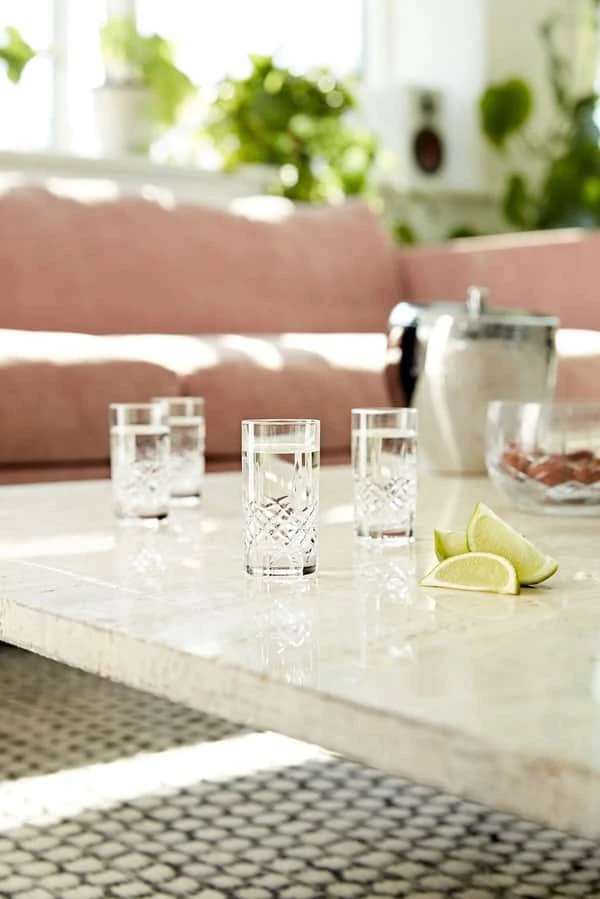 Skal der serveres shots til den store årlige frokost? Så er det frem med shotglassene. De fire glas er udformet i blyfrit krystalglas med et diamantslebent motiv, som giver din borddækning et elegant touch, når det er tid til årets snaps.