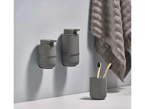 Få mere plads omkring dig ved at hænge det op på væggen. Holderen passer nemlig til både tandbørstekrus og sæbedispenserne fra Zones badserie Ume.