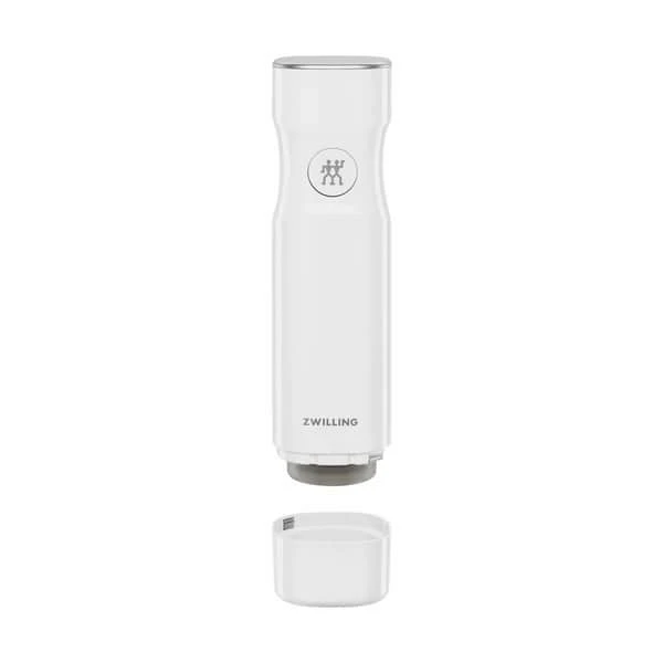 Med Zwilling Fresh & Save vakuumpumpen får du et flot og ledningsfrit design, som er pladsbesparende i forhold til andre vakuumapperater. Desuden er den lydsvag, og klarer vakuumeringen med ét tryk. Vakuumpumpen kan nemt genoplades med det medfølgende USB-kabel.